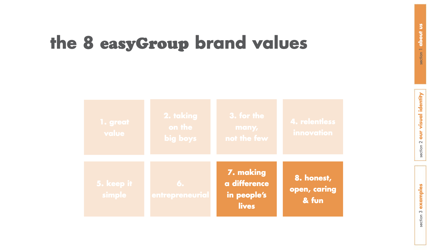 In contrast, looking into the company’s desired brand perception, the two pillars of easyGroup’s 8 Branch Values caught our attention: