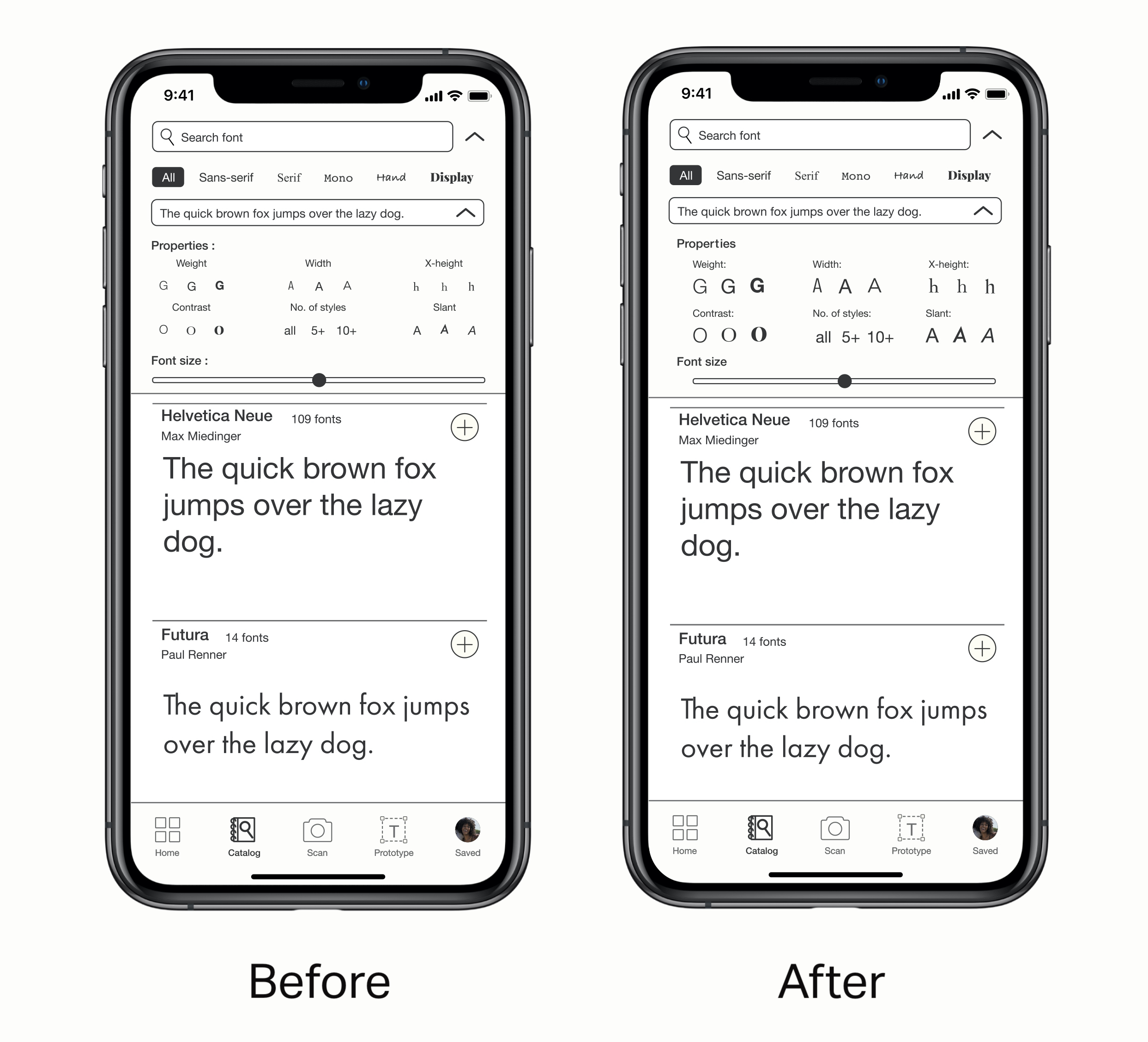User testing was conducted after creating mockups of all interactions. Overall, there were no major usability errors while participants navigated through the app to complete the given tasks. They liked how Type differentiates from existing resources by focusing on typography.